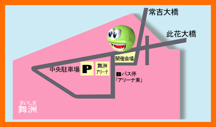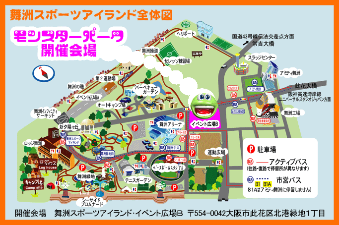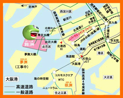 阪神高速湾岸線「北港西」を出て此花大橋を渡り、直進すれば左手に会場が